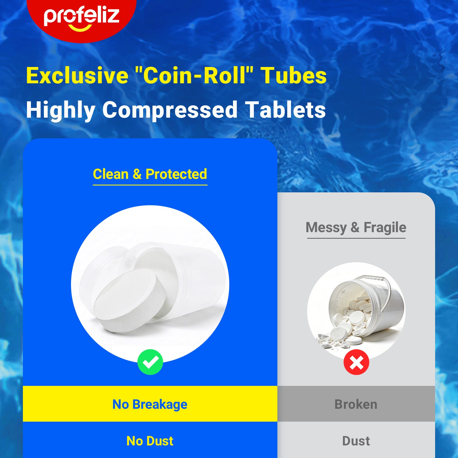 Profeliz 3 Inch Chlorine Tablets for Swimming Pools: Kills Bacteria and Stops Algae. Slow Dissolving and Long Lasting.