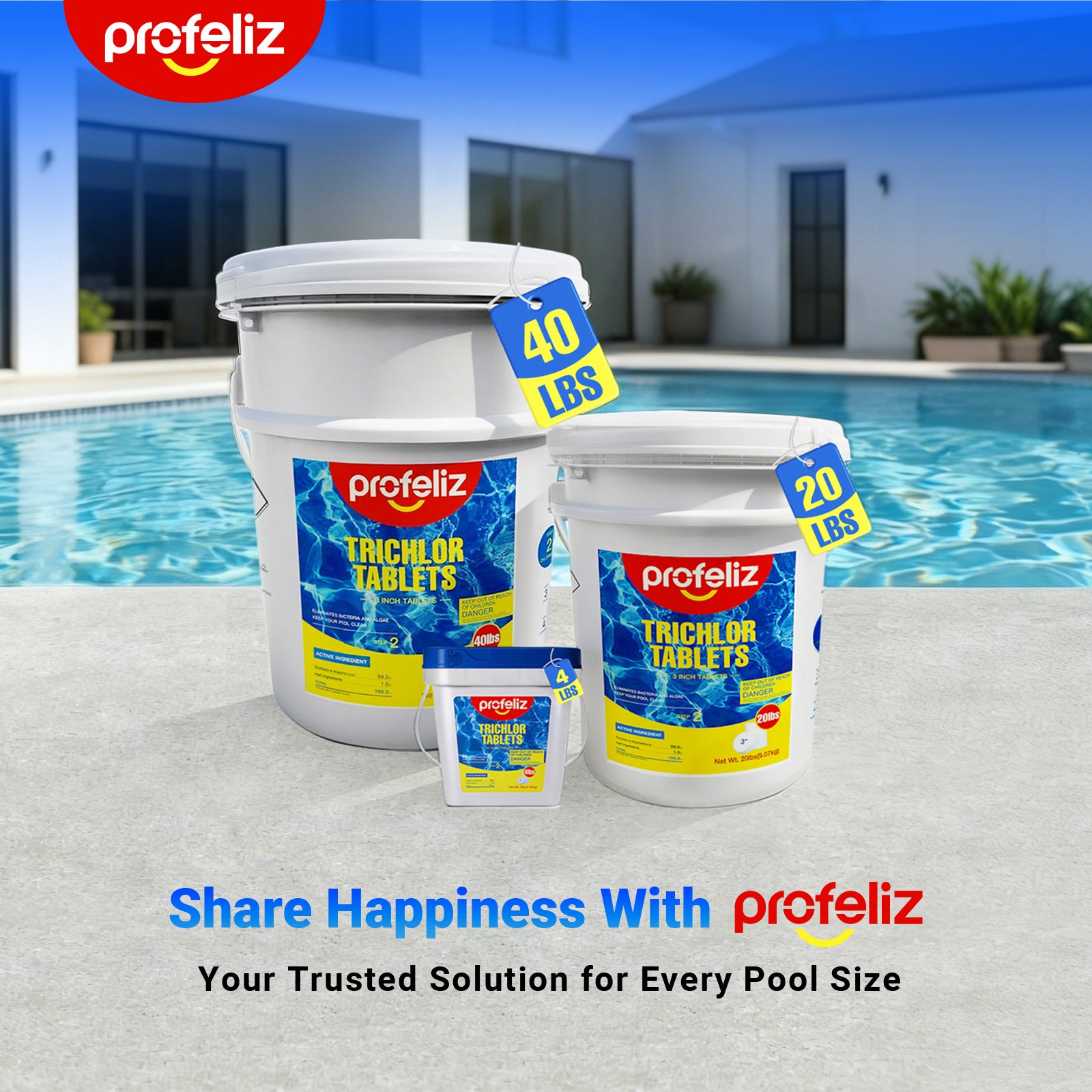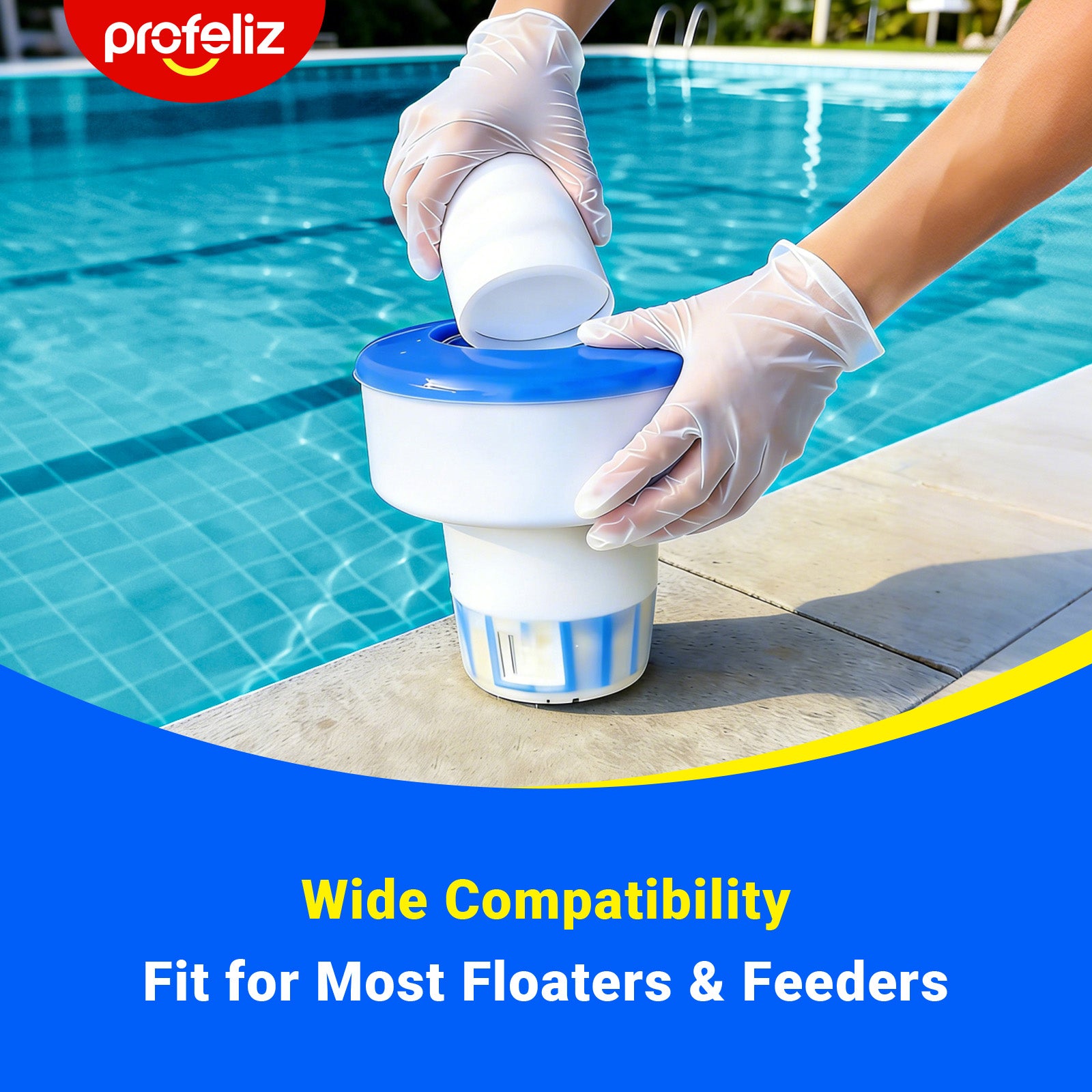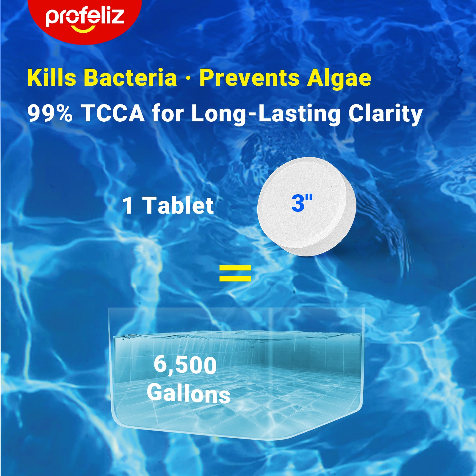 [Suitable for All Pools]: This product is great for all swimming pool types, including above ground and in-ground pools. Profeliz 3 inch chlorine tabs for swimming pool fit easily into most of pool skimmers, floaters or other chlorinating devices.